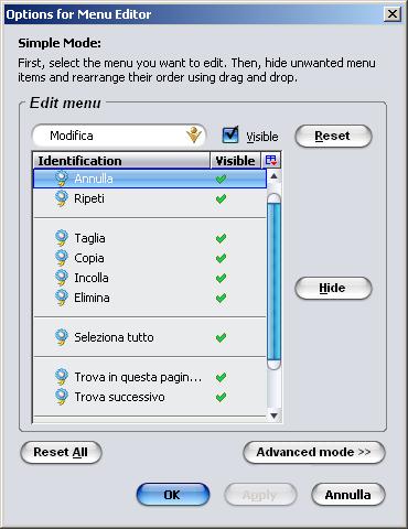 Questa utile estensione permette di nascondere le voci dei menù del programma e dei menù contestuali.